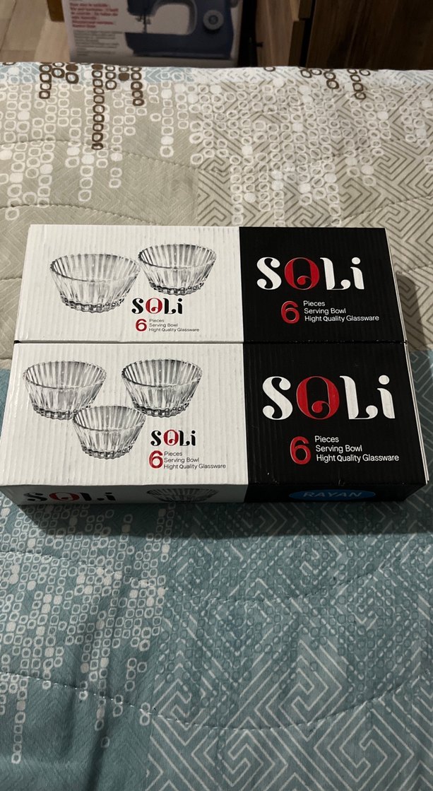SOLi markalı 6 parça beyaz ve koyu tonlarda yüksek kaliteli cam servis kaseleri seti, çerezlik için uygundur. ️