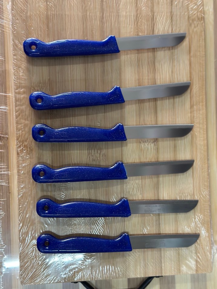 Orijinal solingen Koyu mavi saplı ve paslanmaz çelik bıçaklardan oluşan 6 parçalık bıçak seti, çeşitli kesme işlerinde kullanıma uygundur.