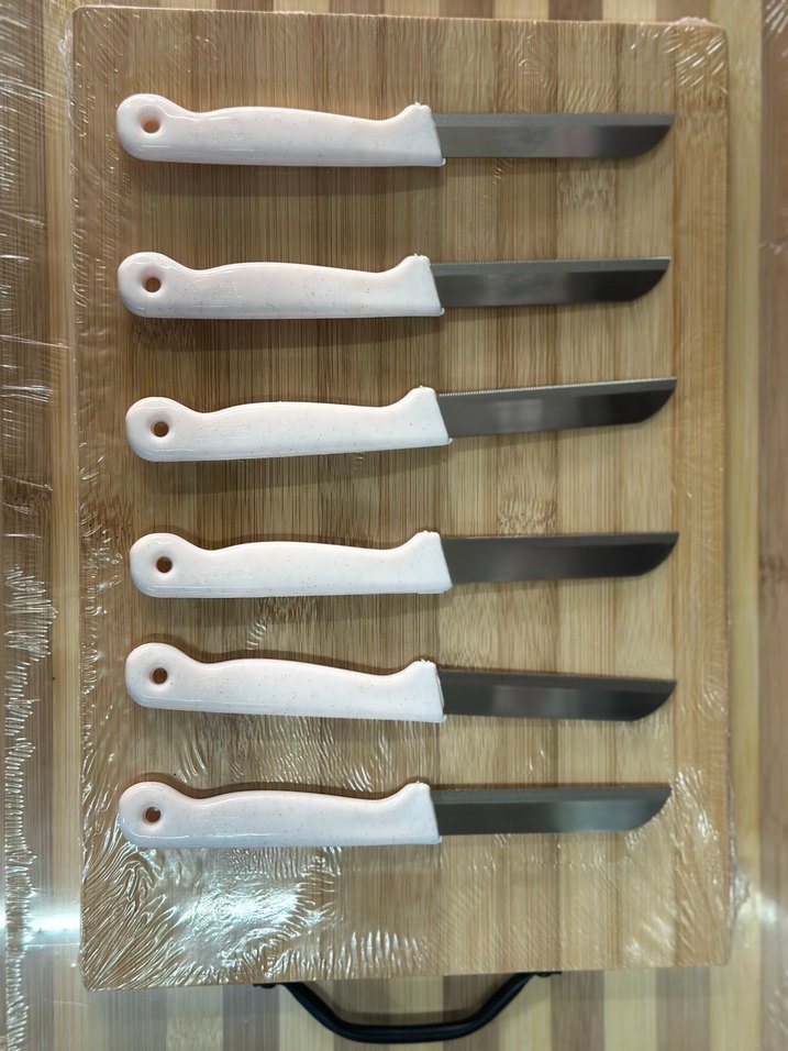 Orijinal solingen Altı adet beyaz saplı mutfak bıçağından oluşan set, farklı kesim işleri için uygundur.