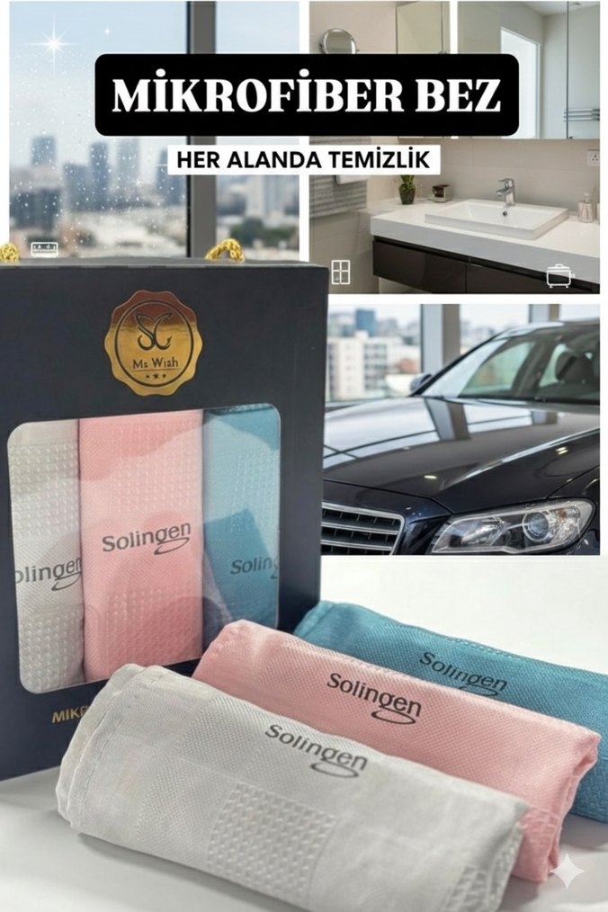 Solingen markalı mikrofiber bezler, açık renkli ve çok amaçlı kullanıma uygun. Ev ve araç temizliğinde kullanabileceğiniz yumuşak ve baskılı 3 adet bez içerir.