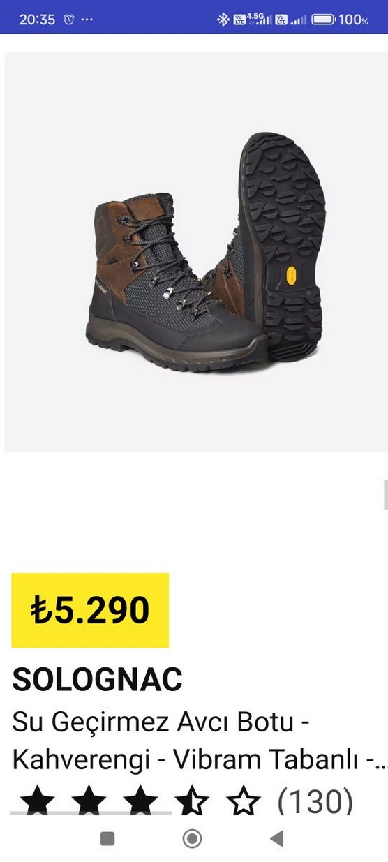 Kahverengi Solognac botlar, kolay bağlama için cırt cırtlı, dış mekan kullanımı için kauçuk malzemeden, sokak stili tasarımında.