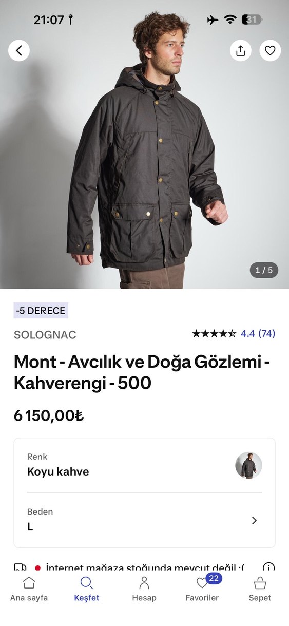 3 kere giyildi sorunsuz tertemiz …Kahverengi Solognac mont, düğmeli ön, uzun kollu ve deri malzemeden üretilmiştir. Normal midi boyda, regular fit ve açık hava aktiviteleri için uygundur.
