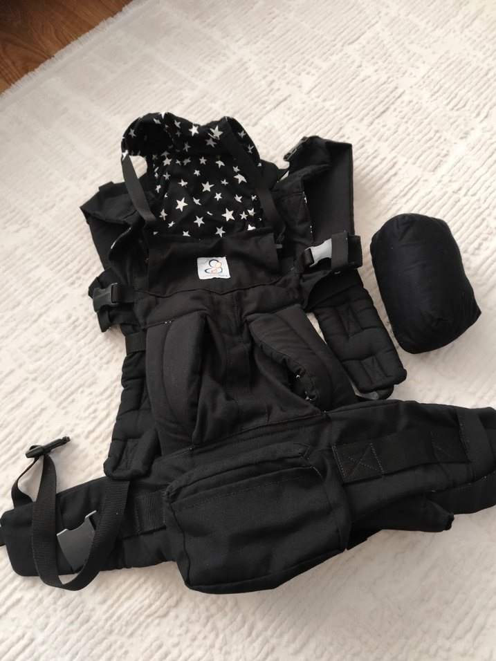 çok kullanışlı bir kanguru yanındaki aparatla Yenidoğan'dan itibaren kullanılıyor çift yönlü kullanılıyor önünde çantası var