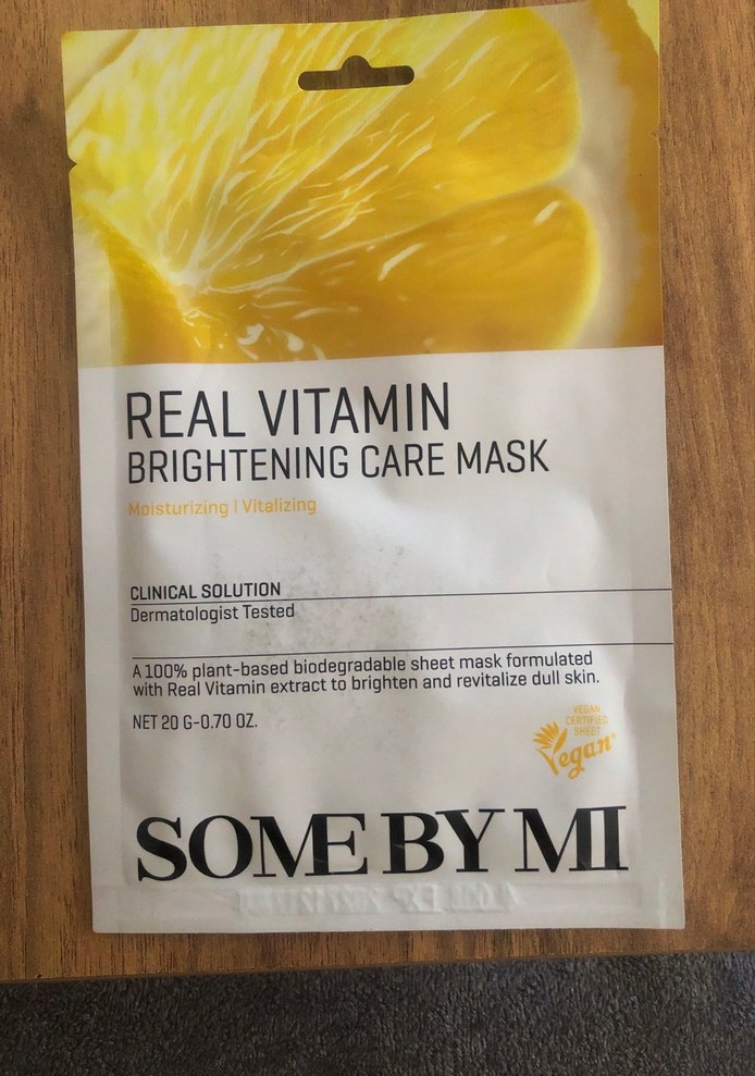 Some By Mi Real Vitamin Aydınlatıcı Maske, gerçek vitamin özütü içeren %100 bitki bazlı biyobozunur yaprak maske ile donuk cildi nemlendirip canlandırır. Dermatolog onaylı.