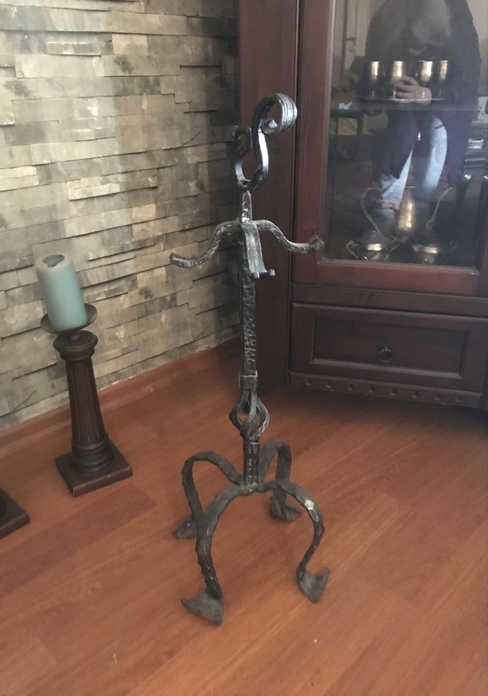 Koyu kahverengi metalden yapılmış, kıvrımlı ayaklarıyla dengeli duran, benzersiz bükülmüş tasarıma sahip mumluk. İç mekanlara rustik bir hava katıyor. ️