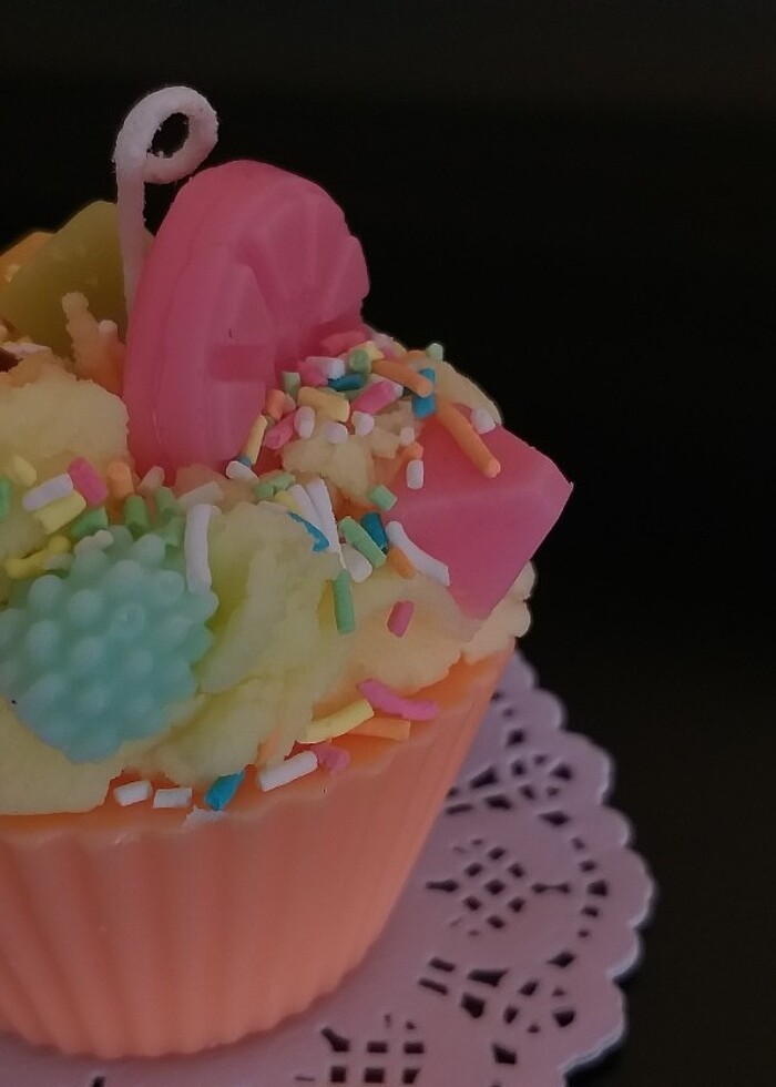 Soya wax mumu meyveli çikolatalı cupcake mumu hediyelik dekoratif özel günler el yapımı soya waxtan yapılmış