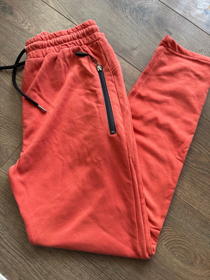 Somon renkte, fermuarlı cepleri ve bol kesimiyle rahat, yumuşak ve sıcak kumaştan kadın sweatpant.