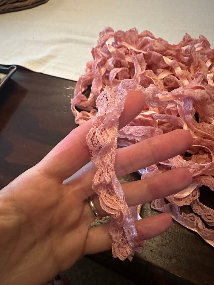 Somon pembe dantel şerit. Esnemez. 8 metre civarı var.