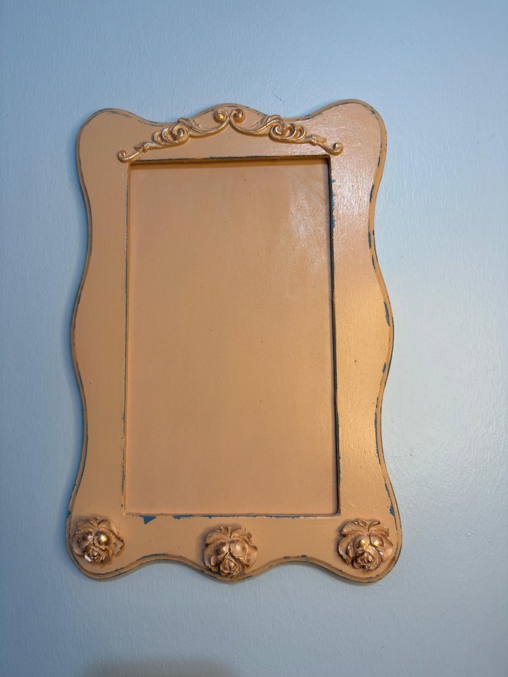 Çiçek detaylı ve zarif kıvrımlara sahip bej parlak dekoratif çerçeve. Duvara klasik bir dokunuş katar. ️