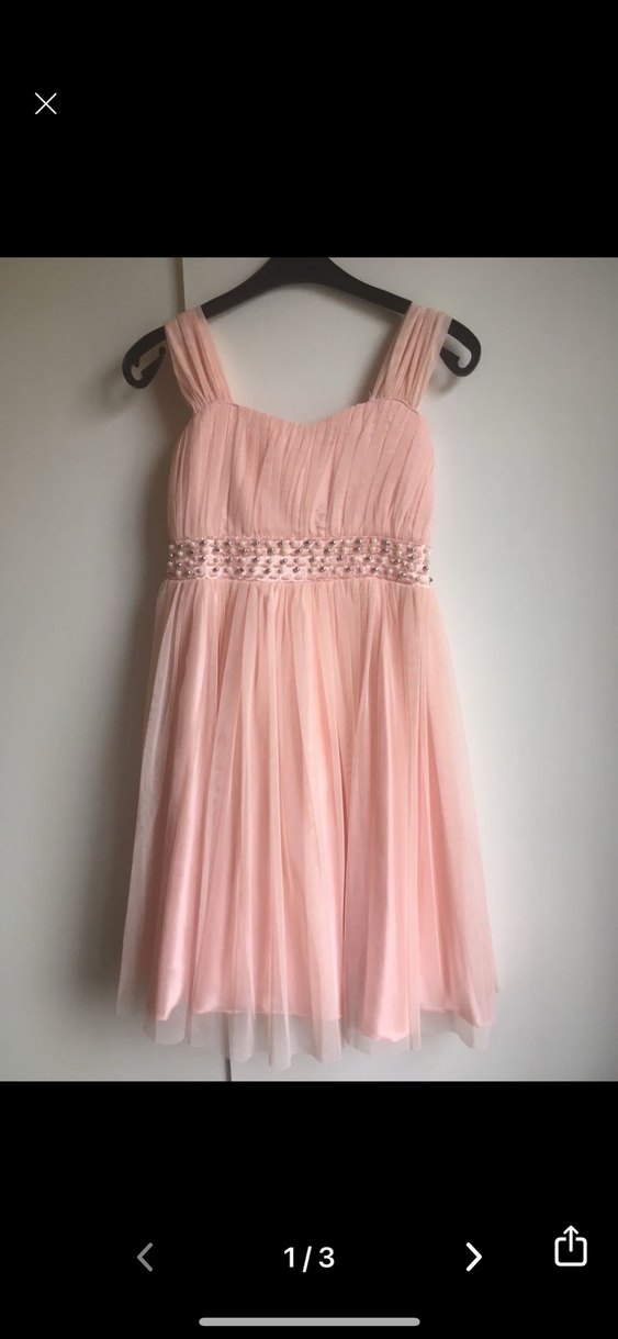 pastel renkte, piliseli ve askılı kız elbisesi. Straplez yakalı, beli işlemeli, modern klasik tarzda, vücuda oturan kesim. Etiketi kesiktir. Omuz askıları kısaltılmıştır. Hiçbir deformasyonu yoktur. 9 yaşa göre uygundur. İstenirse cm olarak ölçüleri verilebilir.