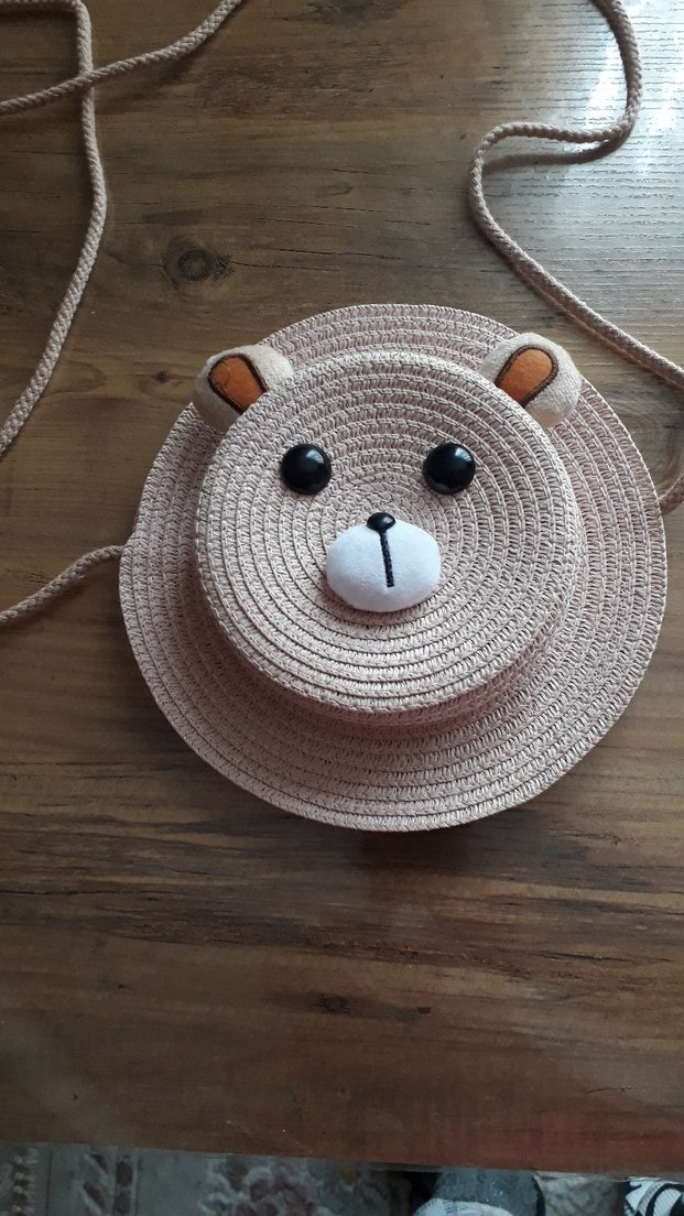 Somon rengi ayıcıklı hasır çanta