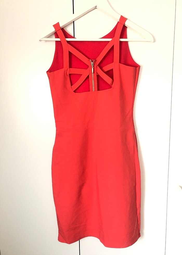Fotoğrafta kırmızı gözüküyor fakat somon rengine yakın bir elbise.