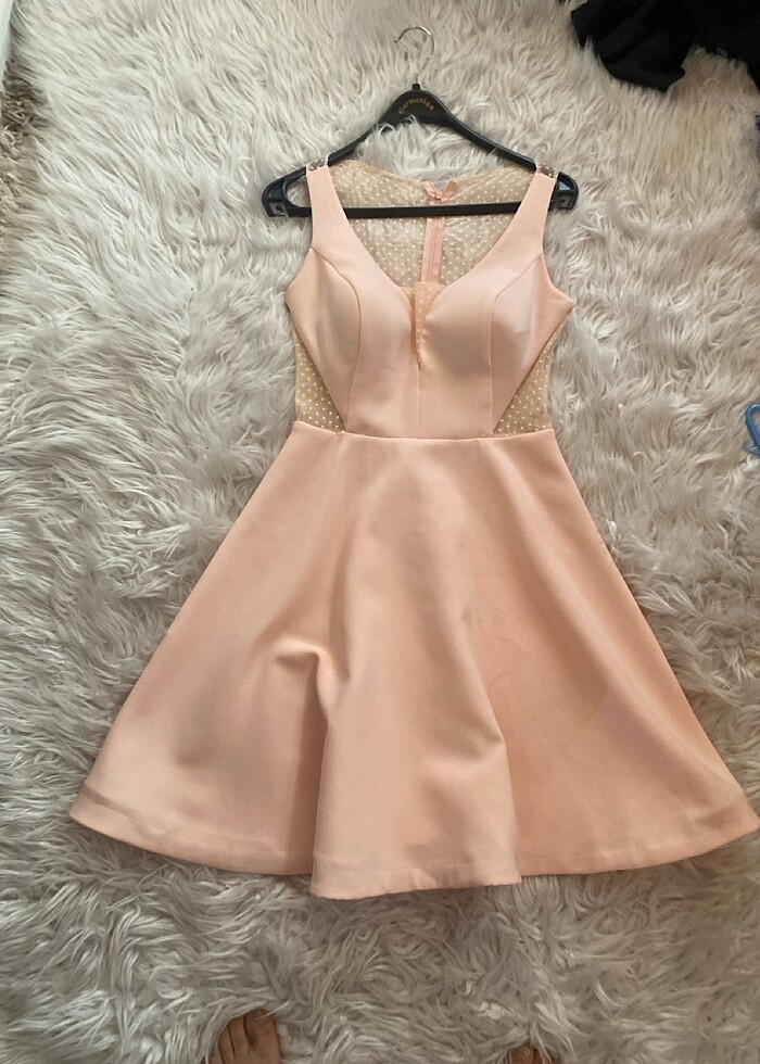 Somon rengi korseli göğüs petli şık kısa abiye likralı