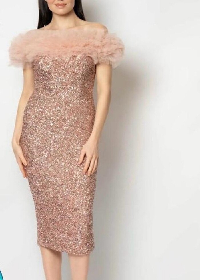 Somon rengi otrisli payet abiye