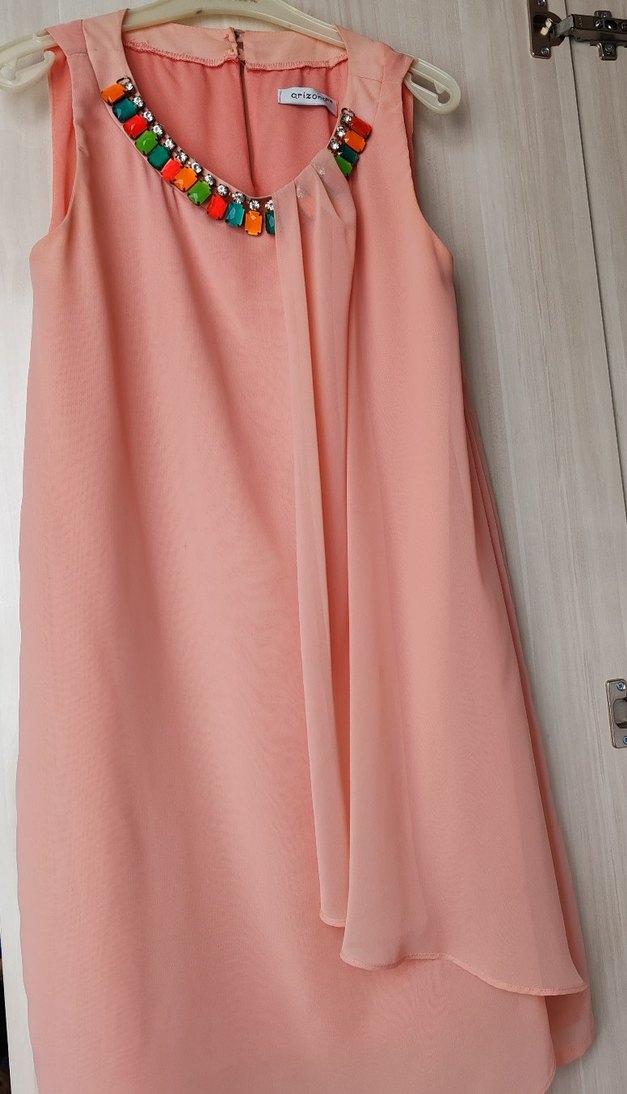 Somon renkli, payetli taş detaylı, bohem tarzda kadın elbise. Arizona markasına ait, günlük kullanıma uygun. Boy:87 cm