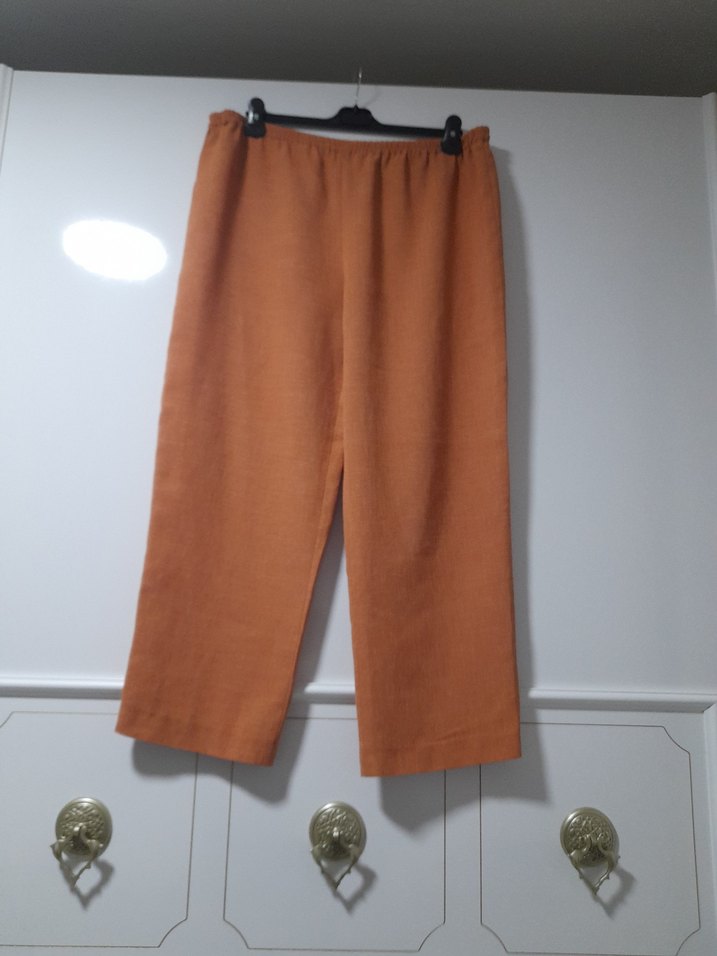somon renkte, 44uyumlu keten kalın kumaştan, , bol kesim kadın pantolon. Rahat ve şık, günlük kullanıma uygun. ürün 3kere kullanıldı kusursuz ve iade garantilidir