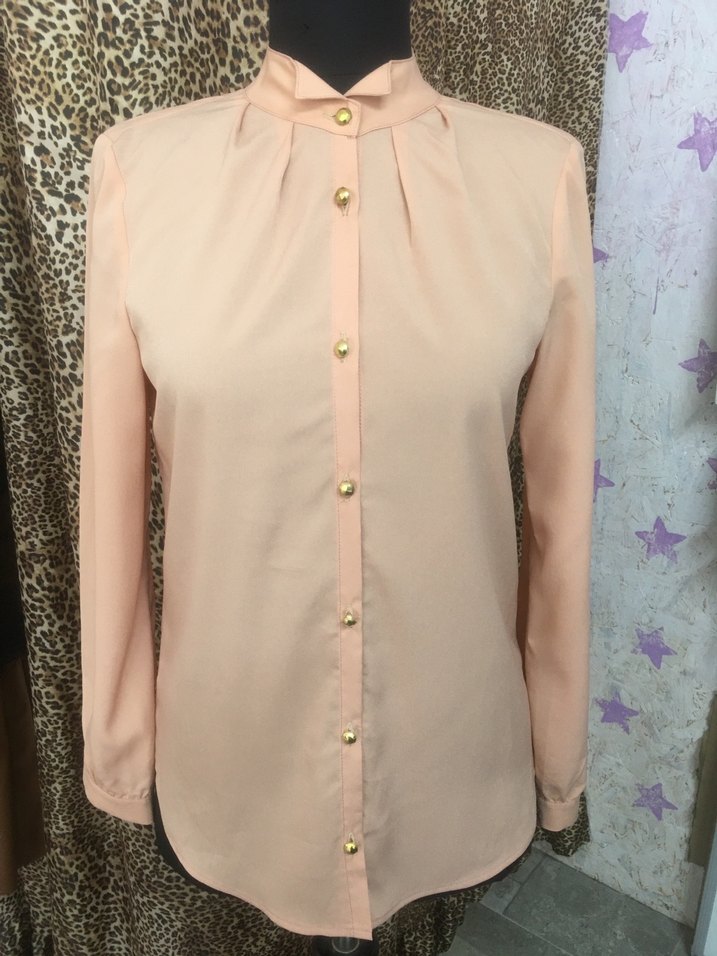 Çok tatlı bir somon renk,uzun kollu, yakalı ve düğmeli kadın gömlek. Rahat kesim ve normal boyda, yumuşak sentetik kumaştan üretilmiştir. Ofis için uygun, sade normcore tarzda.