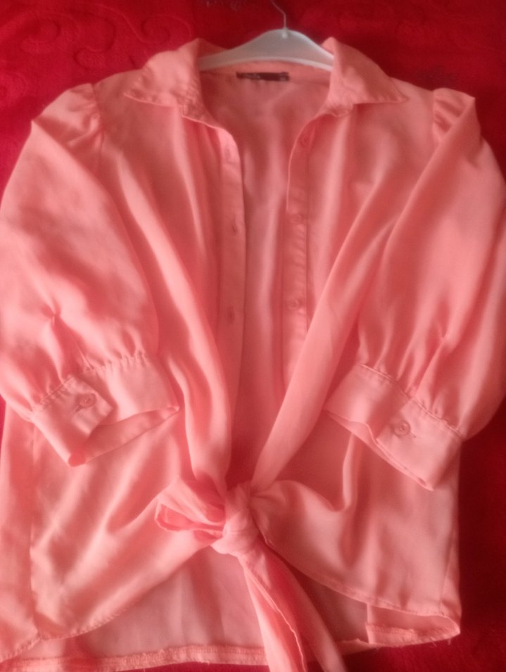 somon renk Düğmeli V Yaka Kadın Gömlek - Görsel 1