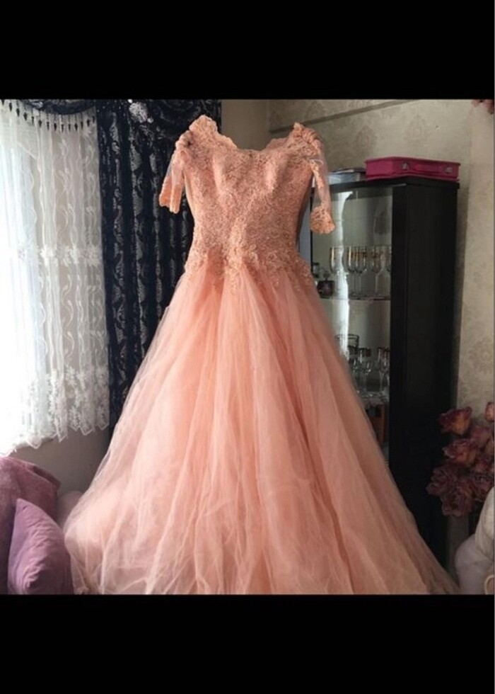 36 38 40 42 beden uyumludur Sadece nişan çekiminde 3 saat giyildi oldukça temiz ve yenidir tamamı boncuk işlemedir yarım koldur tarlatanlı kullanıma açıktır