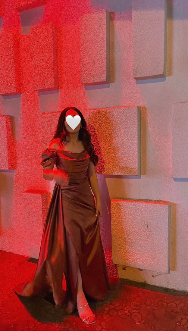 Somon, straplez, uzun ve drapeli bu fitted elbise, gotik tarzda düğünler ve özel etkinlikler için uygundur.