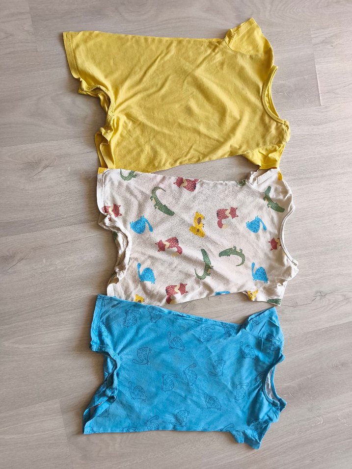 Pamuk, kısa kollu, bisiklet yaka; pastel ve çok renkli 3'lü bebek body seti, rahat kullanım sağlar. kullanılmıştır defoludur defolari görsellerde belirtilmiştir son fiyattır teklif vermeyiniz