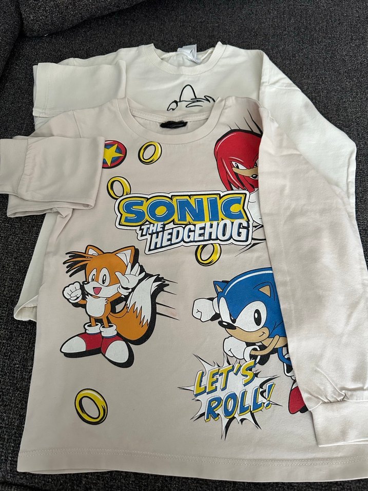 Erkek çocuklar için uzun kollu, bol kesim ve bisiklet yaka tişört. Sentetik kumaştan, düğmeli ve renkli Sonic the Hedgehog baskılı. 4-5 yaş
