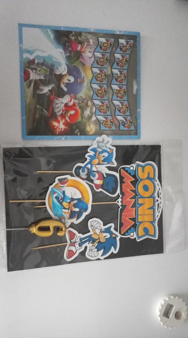 Renkli Sonic temalı figür ve 6 numara mum içeren aksiyon figür seti, kutlamalar için uygundur.