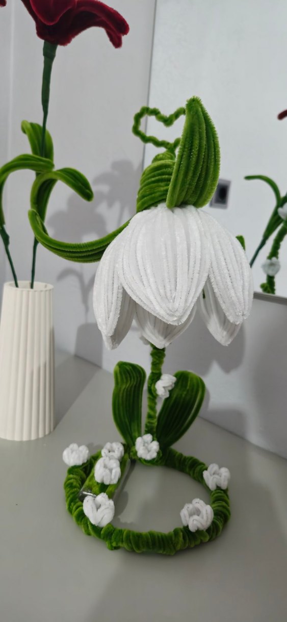 Beyaz kadife yapraklar ve yeşil kadife yaprak detaylarıyla ev dekorasyonuna yumuşak ve şık bir dokunuş katan çiçek süsü.