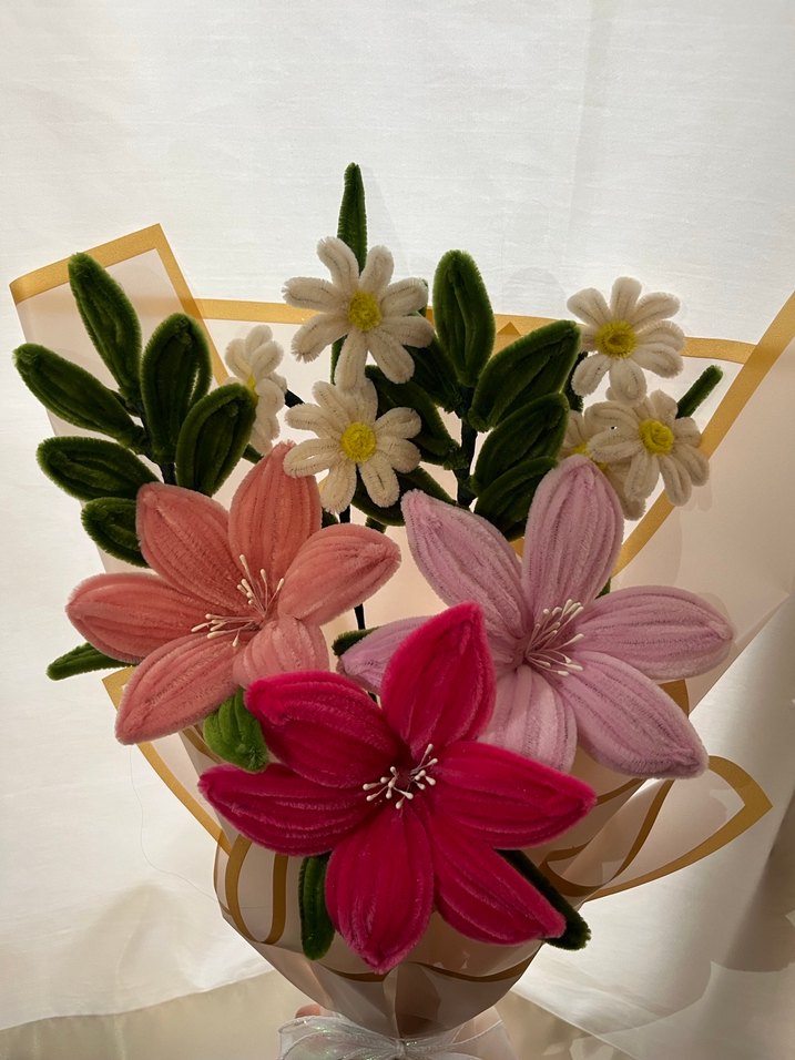 Şönil Çiçekli El Yapımı Dekoratif Buket