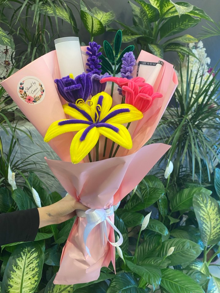 Şönilden yapılan özel tasarım Rapunzel Buketi sevgililer günü için tam bir hediye tercihi