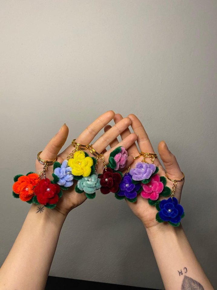 Adet fiyatıdır. İstediğiniz renkte dilediğiniz çiçek çeşidi tasarlanıp anahtarlığa dönüştürülür.