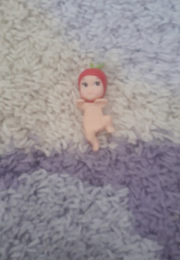 Küçük aksiyon figürü, pembe pastel tonlarda, kırmızı şapkalı ve eğlenceli pozda tasarlanmıştır. Yumuşak ve pürüzsüz dokudadır.