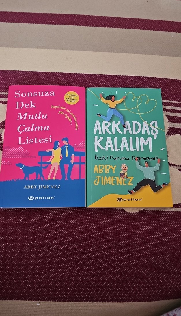 Abby Jimenez'in "Sonsuza Dek Mutlu Çalma Listesi" ve "Arkadaş Kalalım" adlı iki romanı, Epsilon yayınevinden.