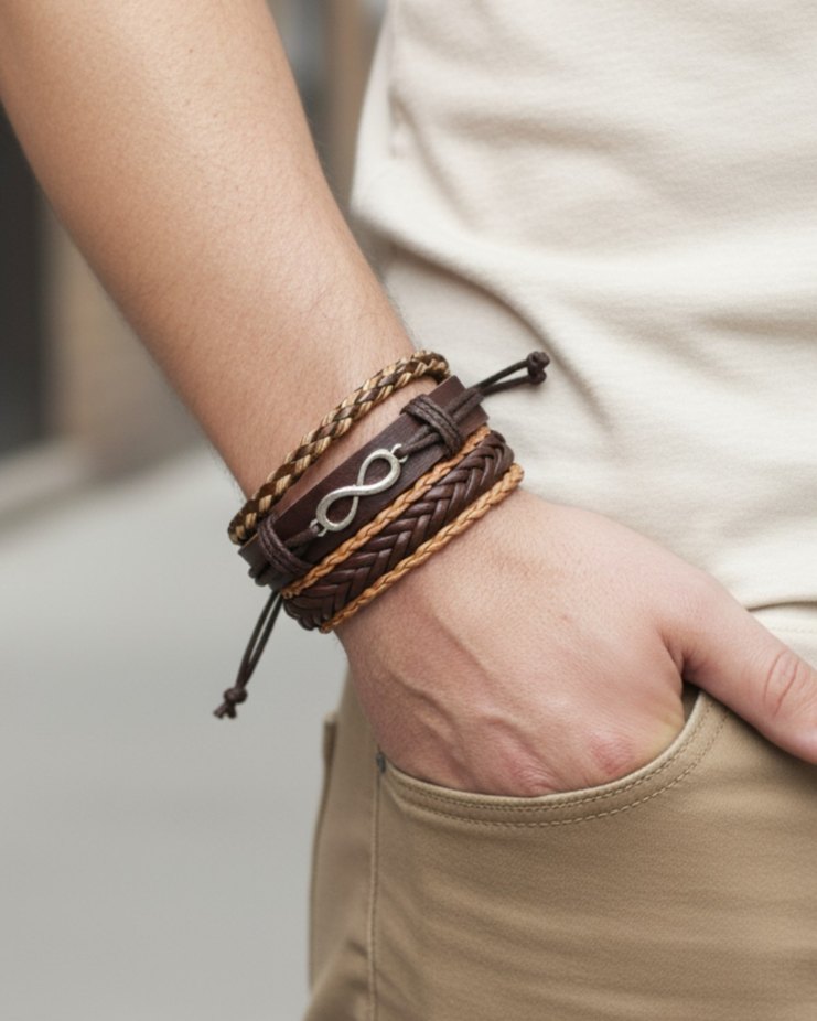 Sonsuzluk Tasarım 3'lü Hakiki Deri Bileklik