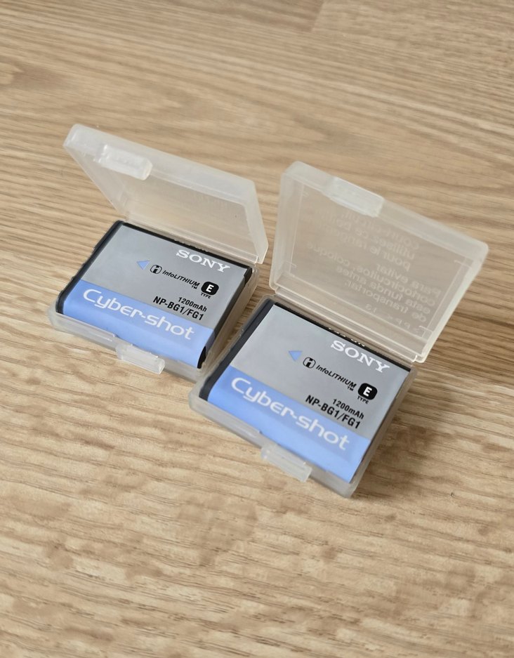 2 adet Koruyucu kutularda mavi Sony Cyber-shot batarya, NP-BG1/FG1 modeli, dijital kameralar için uygun.