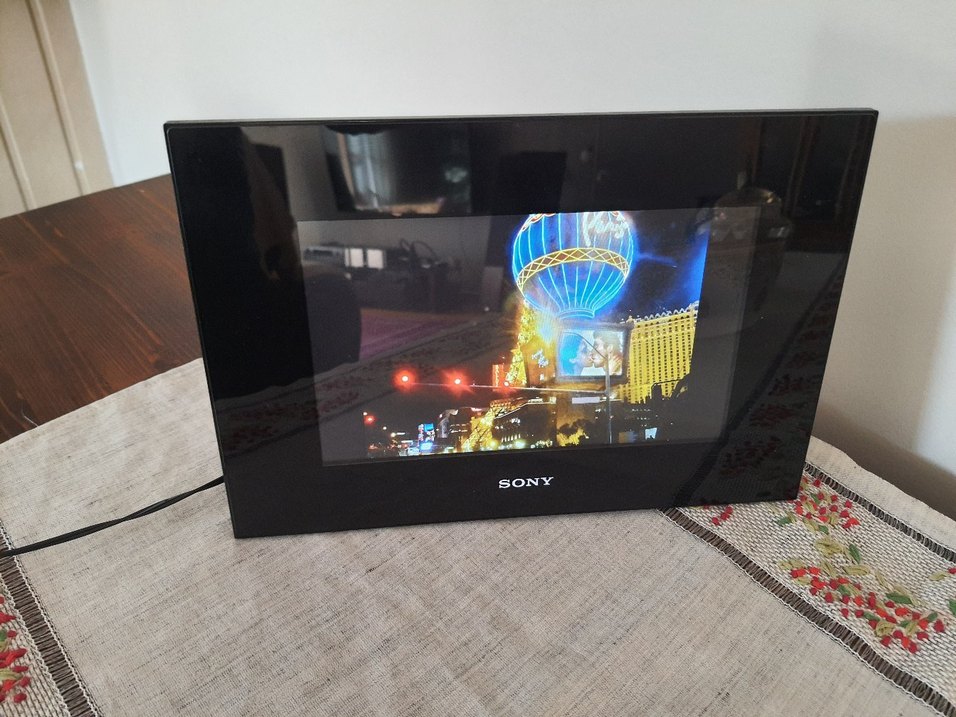 Arıza,kırık. bir tarafı yok. zamanında yurt dışından getirmişti eşim, evde aksesuar kullanmadığım için dolaba kaldırdım: Teknik Özellikler Ekran LCD ekran boyutu: 8.0” / 20,3 cm En-boy oranı: 15:09 Ekran çözünürlüğü: 800 × 480 WVGA Ekran arka aydınlatma tipi: LED Bellek ve Bağlantı HDMI™: Yok Kart Yuvaları Desteklenen kartlar: MS / MS Duo / SD / SDHC / xD / CF USB Bağlantısı USB: B tipi Dahili Bellek Dahili bellek (GB): 1 GB Maksimum fotoğraf sayısı: 2000 Desteklenen İçerik Formatları Fotoğraf formatları: JPEG / TIFF / BMP / RAW Müzik formatı: Yok Video formatı: Yok Genel Özellikler Dahili batarya: Yok Slayt gösterisi: 10 farklı desen Değiştirilebilir çerçeve: Yok Saat ve takvim: 17 farklı tasarım Geniş izleme açısı: Yok Uzaktan kumanda: Var Otomatik açma / kapama zamanlayıcısı: Var Sıralama: Var Alarm saati: Var Dizin (Index): 3 farklı desen TruBlack: Yok Otomatik yönlendirme: Var