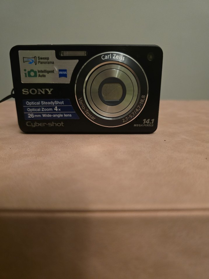 Sony Cyber-shot dijital kamera, 14.1 megapiksel sensör, Carl Zeiss lens, Optical SteadyShot görüntü sabitleme, 4x optik zoom ve 26mm geniş açı lens ile birlikte gelir. Sorunsuz calısıyor cok iyi durumda