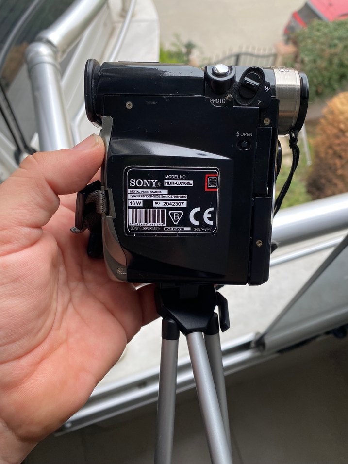 Sony HDR-CX190E model siyah video kamera, kompakt tasarımlı ve tripoda monte edilmiştir. Net çekim sağlar.