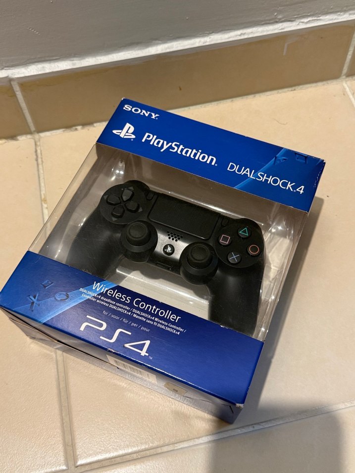 Sony PlayStation DualShock 4 kablosuz oyun kumandası, siyah renkte, çift joystick ve hassas düğmelerle oyun kontrolü sağlar. PS4 uyumludur.