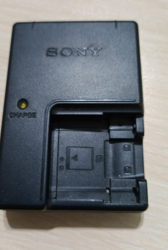 Sony marka siyah renkte, uyumlu piller için kompakt şarj cihazı. Şarj durumunu gösteren ışık içerir.