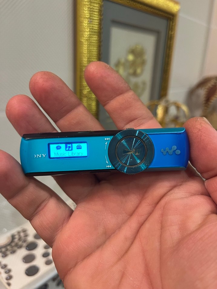 Koyu mavi renkte Sony taşınabilir medya oynatıcı, küçük ekran ve dairesel kontrol tekeri ile kolay kullanım sağlar. Kompakt ve müzik çalabilir. Ürünümüz gayet iyi durumda sorunsuz çalışıyor bataryası gayet sağlıklıdır