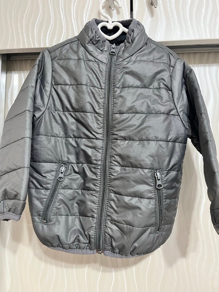 Az giyildi sorunsuz temiz Erkek çocuk için gri renkli, fermuarlı ve cepli, suni kumaştan yapılmış, dar kesim sokak stili mont. Notch yaka detayına sahiptir.
