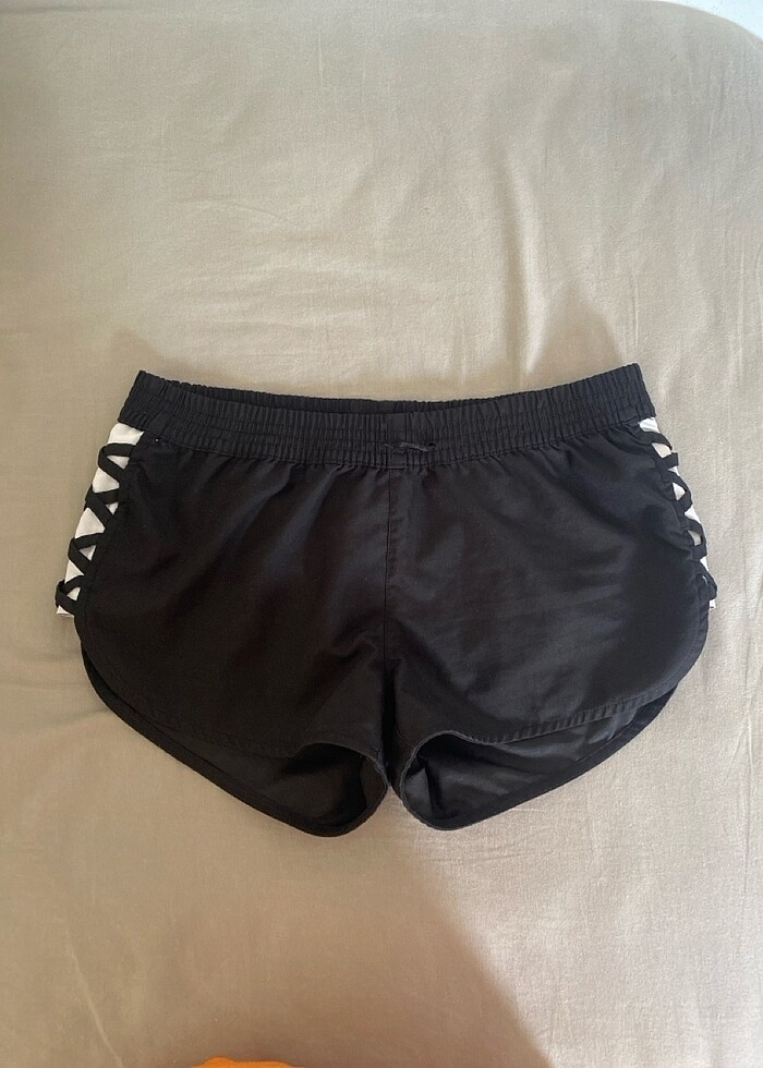 Deniz şortu, önündeki yırtık dışında bir defosu yok 1-2 kez giydim