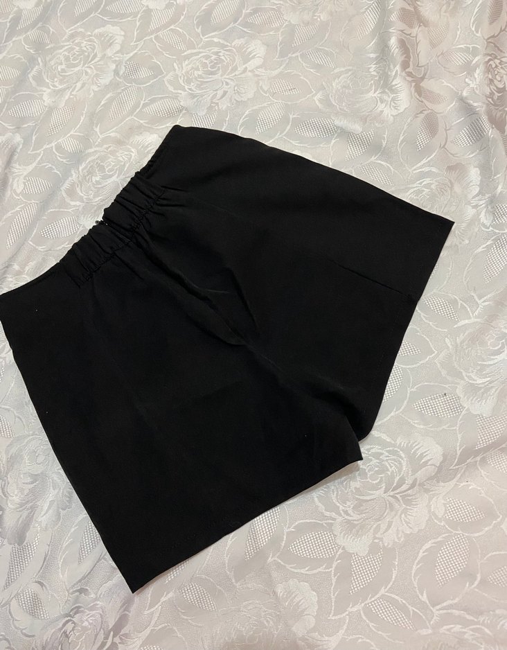 , yüksek bel, mini boy şortlar, bol kesim ve ipeksi dokusuyla minimalist sokak stili için uygundur. Rahat ve zahmetsiz dış mekan kullanımı için idealdi