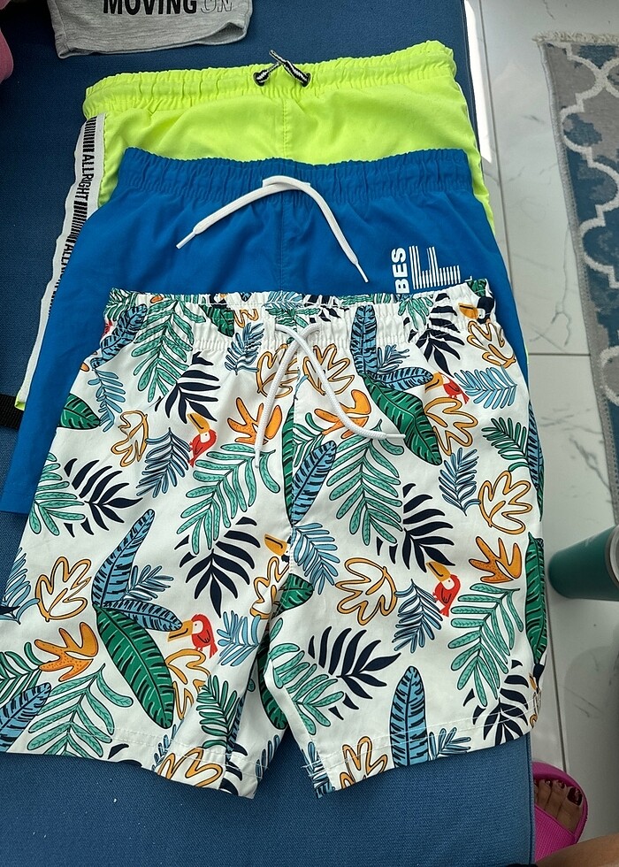 1adet 8-9 ve 2 adet 7-8 yaş olmak üzere toplam 3 adet deniz şortu mayosu gayet temiz herhangi bir deformasyonu yoktur