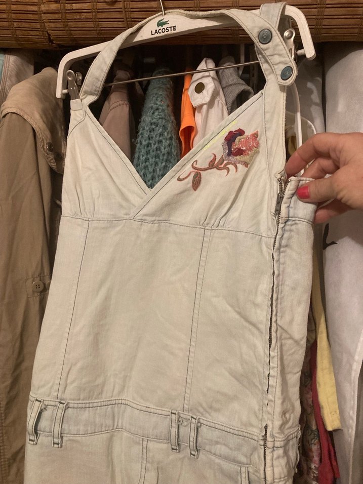Şort tulum eskitme tarzı Bohem tarzda, yan fermuarlı, nakışlı bej renk kız salopet, rahat kesim ve kolsuz tasarım istanbul Levent Metro yakın elden Teslim olur Fiyat Son NoT:kullanmadığım için dururken ufak leke olmuş resimde ilanda ekledim iade Yok