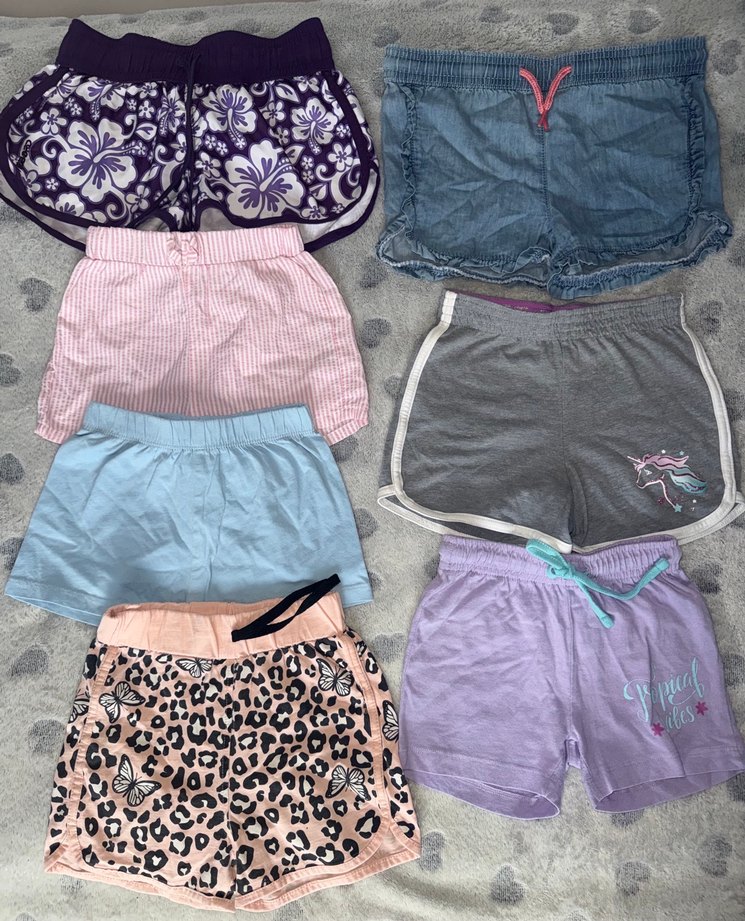 Tüm şortlar temiz ve defosuz. Gri - 4/5 yaş, lacivert - 3/4 yaş, mavi - 3/4 yaş, leopar - 5/6 yaş, kot mavi - 4/5 yaş, pembe çizgili - 12/18 ay, çiçekli mor - 7/8 yaş.