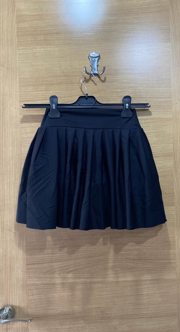 Düz siyah renkte, pilili ve sıkı kesim mini etek. Sentetik kumaştan yapılmış olup minimalist goth tarzına uygundur. Bel ölçüsü 27cm
