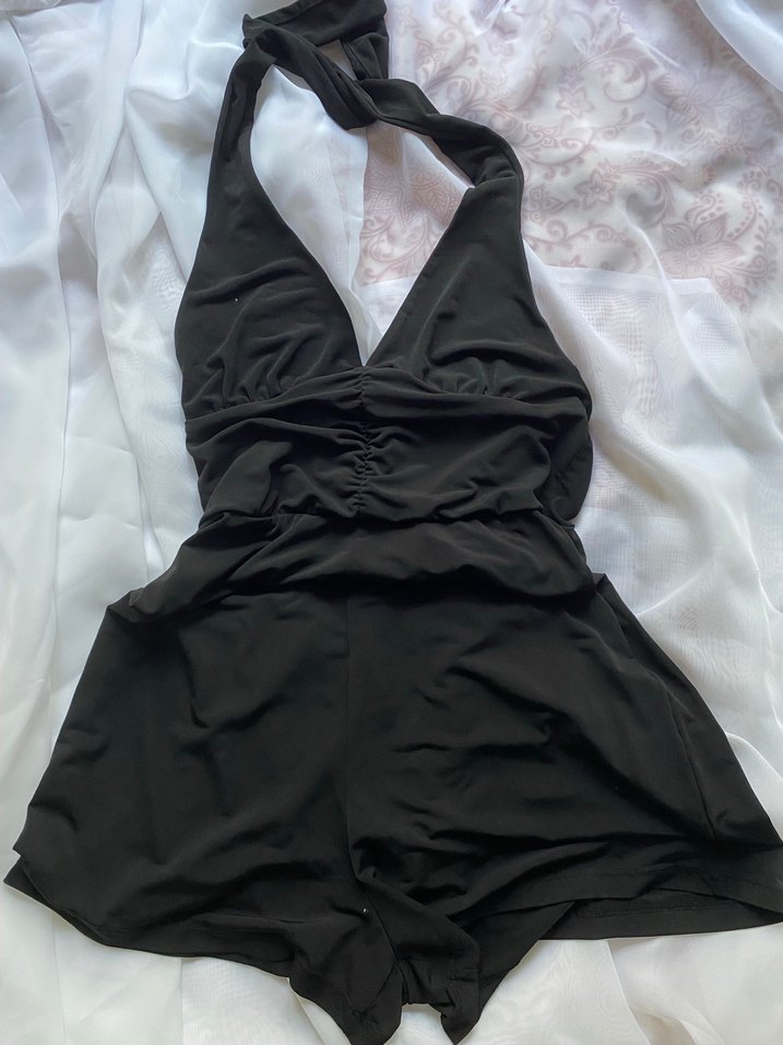 Siyah, drapeli ve askılı tasarıma sahip, normal boyda gotik tarzında, vücuda oturan . Parti için uygun cesur bir model