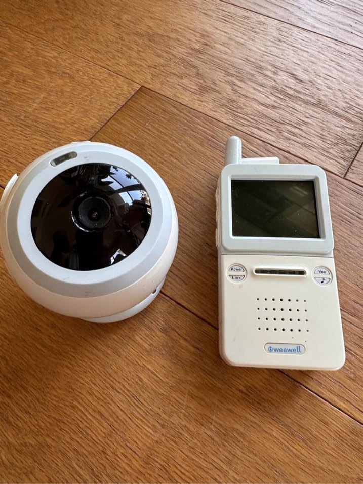 WEEWELL KALİTESİNİ BİLEN BİLİR. GECE LAMBASI VE NİNNİ ÇALAR ÖZELLİKLERİ VAR. Küçük ekranlı ve kablosuz kameraya sahip beyaz bebek monitörü ve kamera seti.